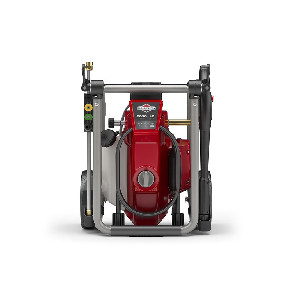 This electric, 2000 PSI pressure washer is a durable, quiet and easy-to-use solution for cleaning patio furniture, vehicles, walkways and more. Get those stubborn stains clean up to 40% faster than a standard spray tip by attached the specicalized Turbo nozzle.MAX PSI*